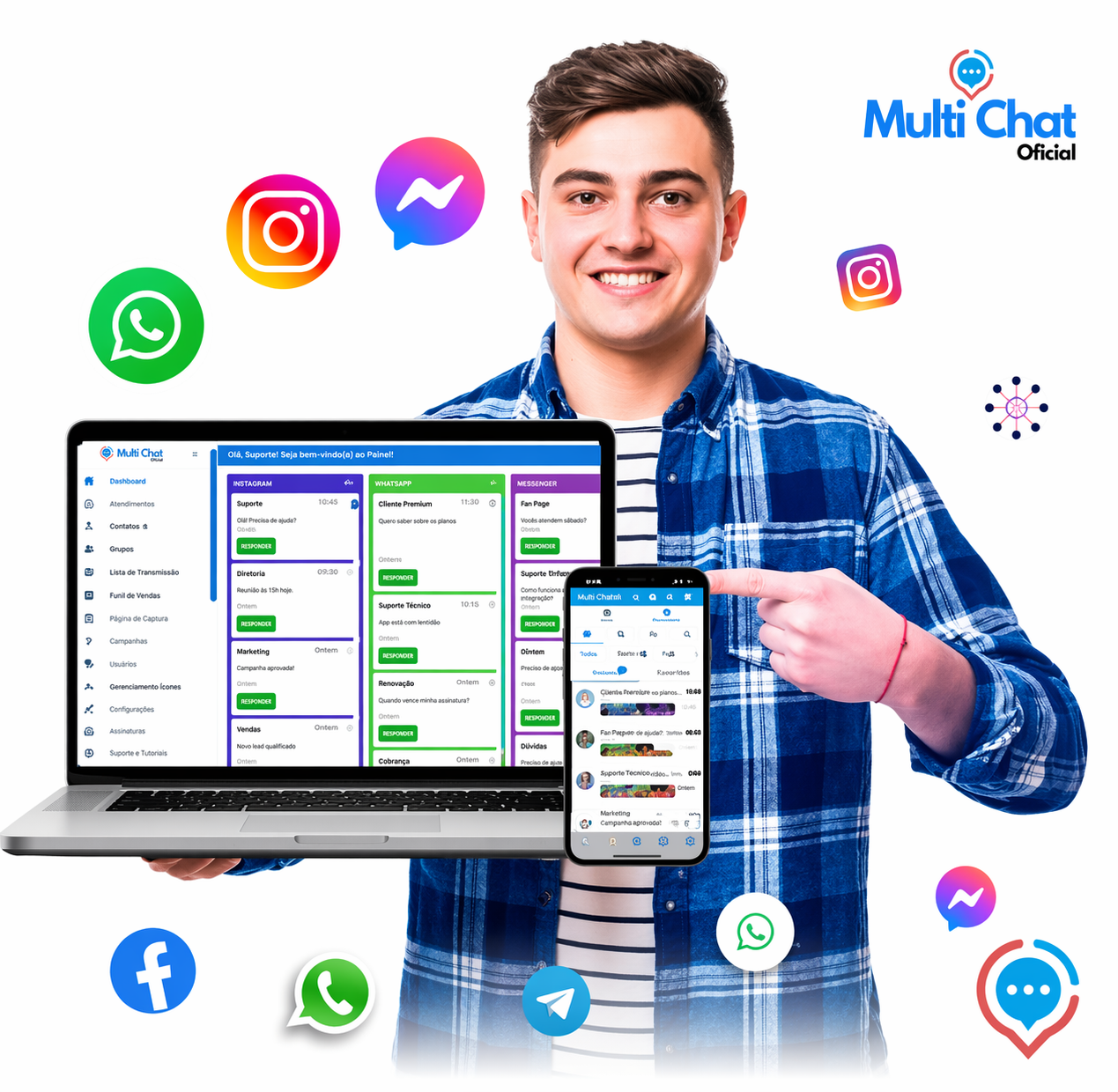 MultiChat é uma plataforma de multi atendimento para o WhatsApp e Redes Sociais.